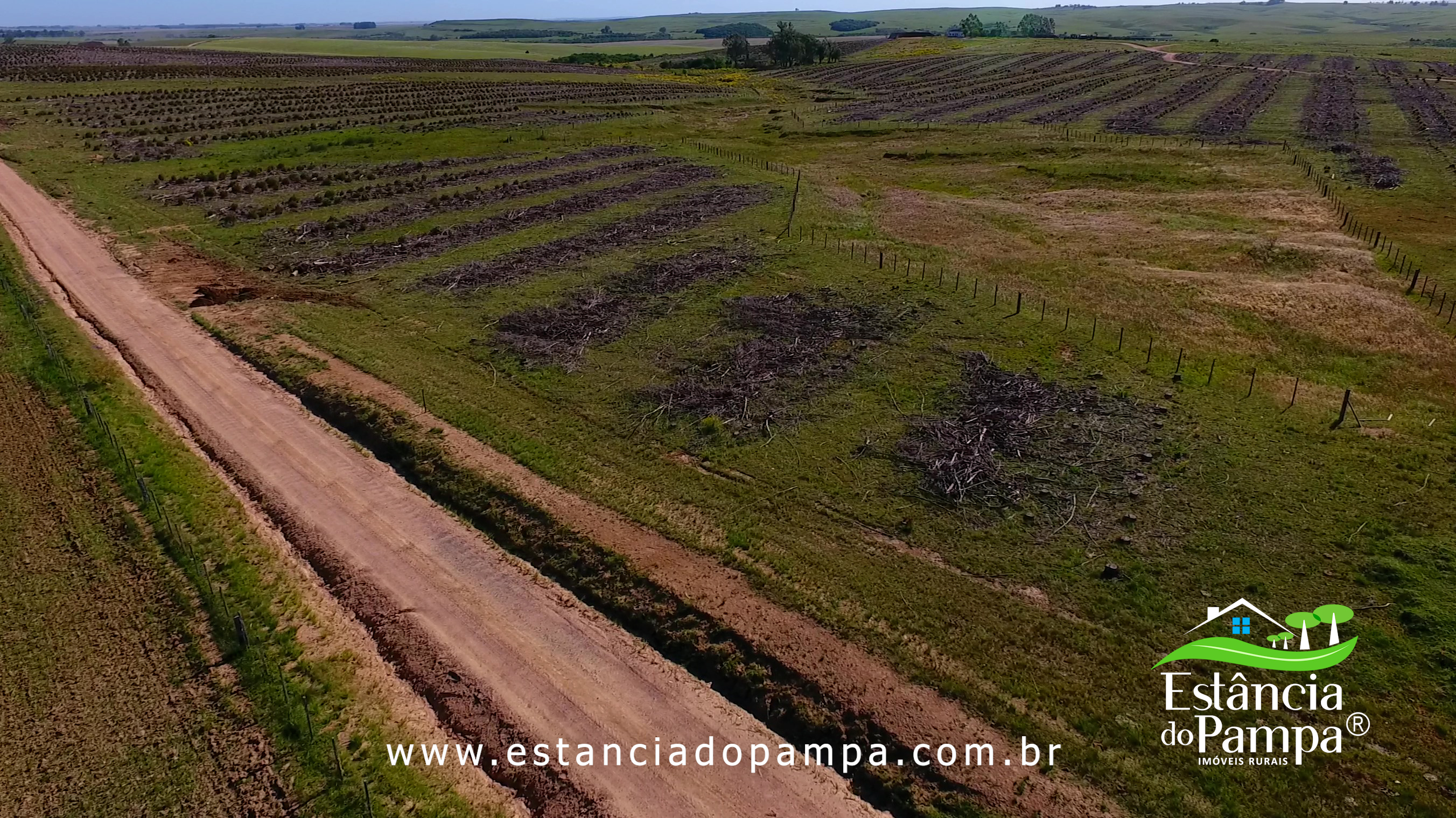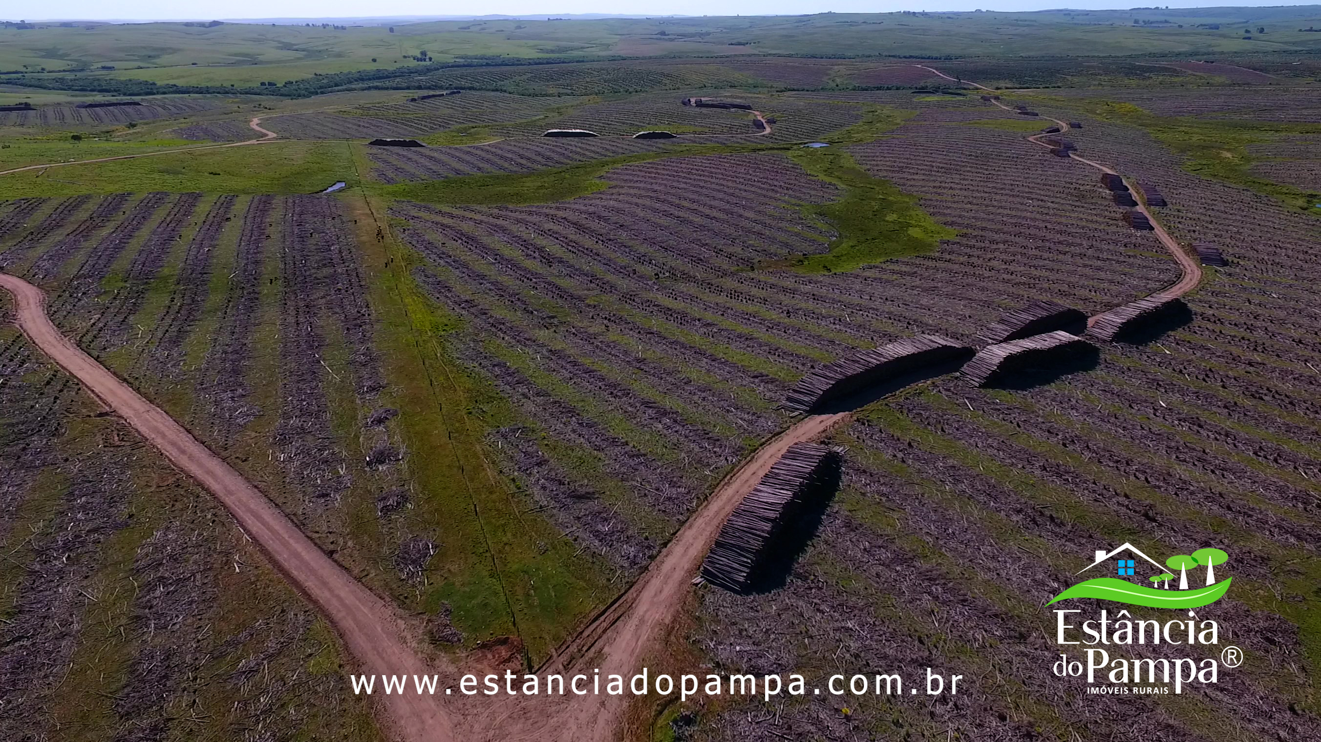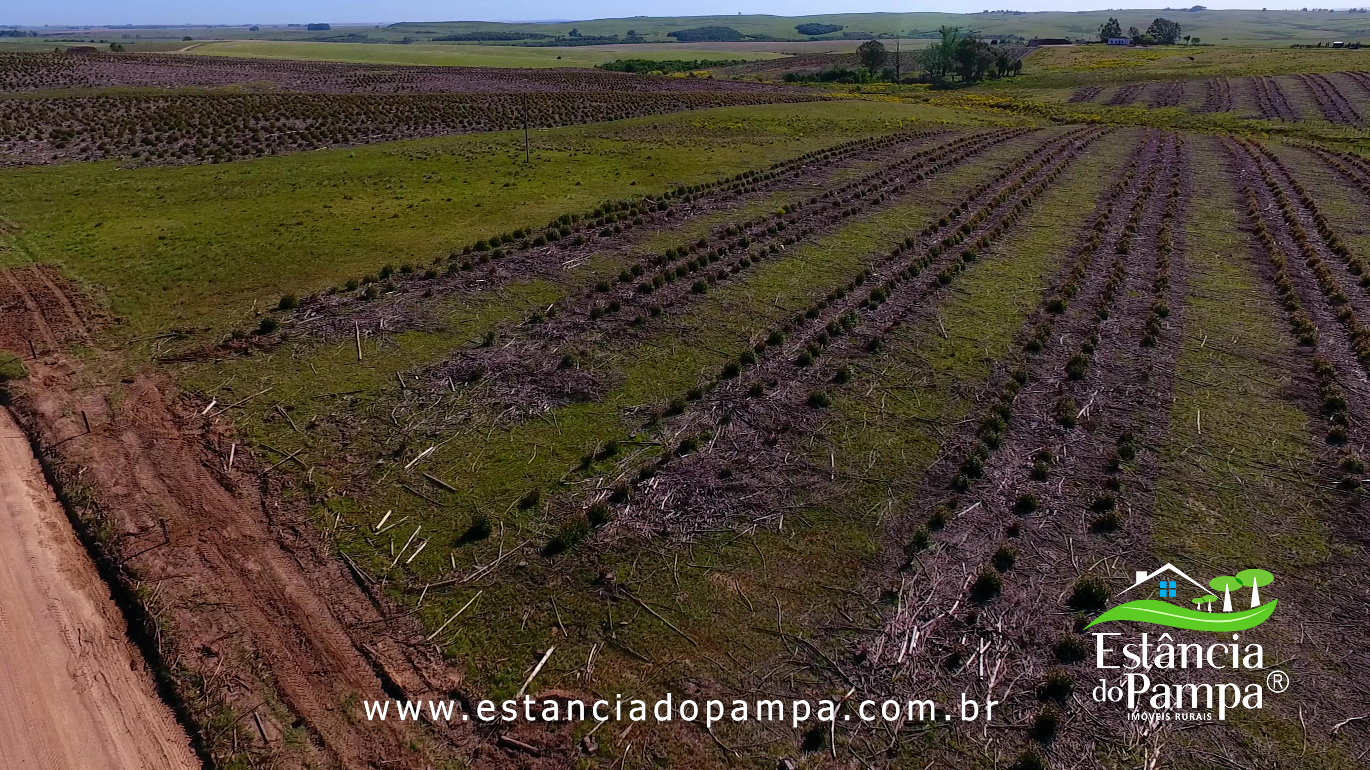Localizada à 30 km da BR, estrada semi plana, topografia de coxilhas grandes para Soja, 85% de área agricultavel e lavouras de soja estabelecidas na vizinhança. Atualmente a área está no final da colheita de uma floresta de eucaliptos. PREÇO PARA IN